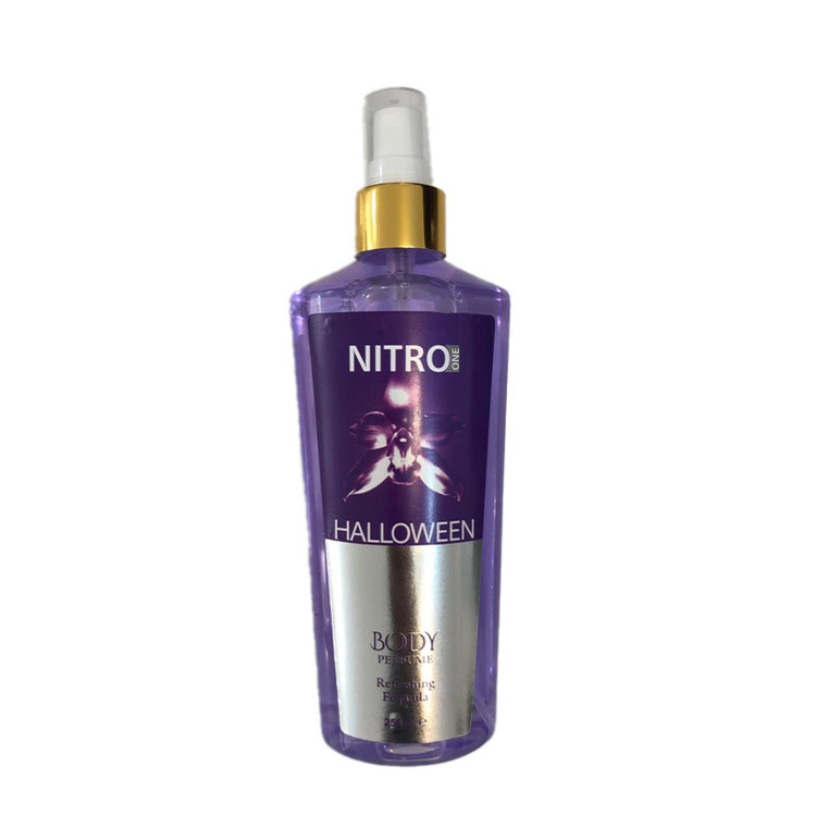 بادی اسپلش زنانه نیترو حاوی رایحه هالووین Halloween با طبع ملایم خنک و شیرین کلاسیک زنانه با ماندگاری طولانی مدت و از بین برنده بوی ناخوشایند بدن ناشی از تعریق بدن است.
