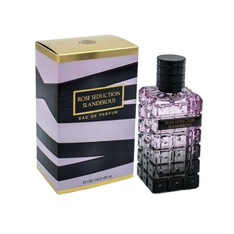 عطر زنانه فراگرنس ورد مدل Rose Seduction Slanderous از خانواده میوهای، گلی و لبنیاتی بوده و درون آن از رایحه گل رز استفاده شده و طعمی شیرین و طبعی گرم دارد. عطر گلی میوهای رز سداکشن اسلندورس محصولی از برند مشهور فراگرنس ورد بوده که برای اولین بار توسط این برند به بازار عرضه شد. این عطر قابل استفاده برای بانوان در شبهای فصول پاییز و زمستان است. عطر Rose Seduction Slanderous دارای روایحی شبیه به عطر Scandalous از برند نامدار ویکتوریا سکرت است.